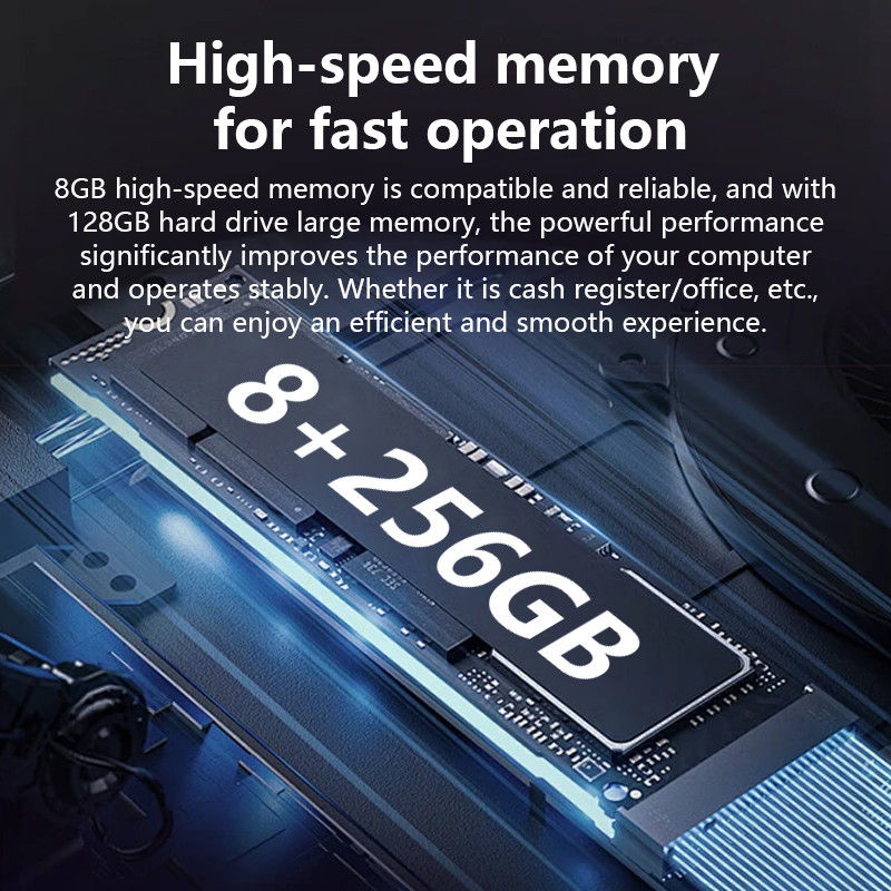 के साथ8GB रैमऔर उपवास256GB एसएसडी, यह पीओएस टर्मिनल सुचारू मल्टीटास्किंग, त्वरित डेटा एक्सेस और उच्च कार्यभार के तहत स्थिर प्रदर्शन सुनिश्चित करता है। 8GB मेमोरी कई पीओएस अनुप्रयोगों के निर्बाध संचालन की अनुमति देती है,जबकि 256GB सॉलिड-स्टेट ड्राइव इन्वेंट्री डेटाबेस के लिए पर्याप्त भंडारण प्रदान करता है, लेन-देन रिकॉर्ड और ग्राहक डेटा के साथ सभी तेजी से बूट समय और बेहतर प्रणाली प्रतिक्रिया के साथ। यह विन्यास उच्च मात्रा वाले खुदरा स्टोर, सुपरमार्केट, रेस्तरां,और व्यापार केंद्र.