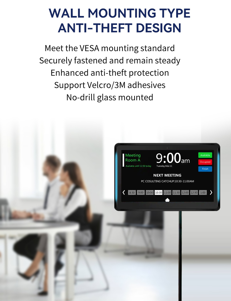 यह 10.1 इंच का एंड्रॉइड टैबलेट 24/7 वाणिज्यिक उपयोग के लिए डिज़ाइन किया गया है। यह पीओई पावर और स्थिर वाई-फाई कनेक्टिविटी का समर्थन करता है, जो वायरिंग जटिलता के बिना निरंतर संचालन सुनिश्चित करता है। हार्डवेयर प्लेटफॉर्म को मुख्यधारा की बुकिंग और डिजिटल साइनेज सॉफ़्टवेयर के साथ एकीकरण के लिए अनुकूलित किया गया है, जिससे यह पैमाने पर एंटरप्राइज़ तैनाती के लिए विश्वसनीय हो जाता है।